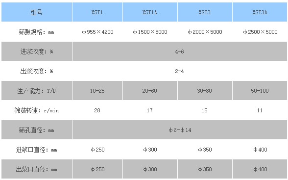 The waste pulp from the high-concentration hydraulic pulper is pumped into the cylindrical screen drum, and the A-type cylindrical screen is directly entered into the screen drum by the rough separator or impurity separator. Under the action of centrifugal force, the good slurry passes through the sieve plate, and the coarse debris is transported to the slag outlet by the spiral blades in the sieve drum.